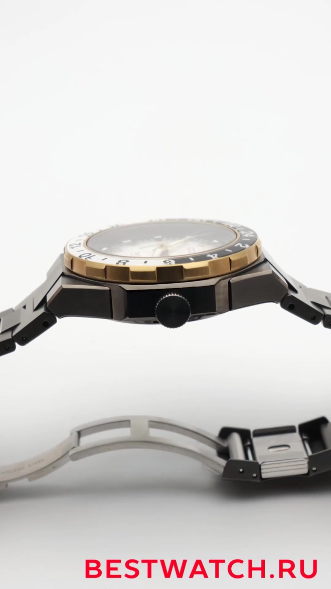41 мм стали с серым IP и золотыми акцентами. Серо-серебристый диск — сдержанно, но со вкусом. Браслет сидит плотно, задняя крышка прозрачная — механизм на виду. Сапфир с антибликом читаем везде.