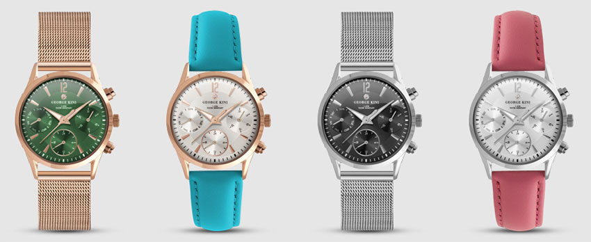 Женские модели George Kini имеют еще один плюс: циферблат каждой из них украшает бриллиант. Небольшой, но настоящий, что делает часы еще привлекательнее.